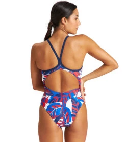 Practice your stroke at the pool in the Arena Women’s Tropicals Challenge Back One Piece Swimsuit.