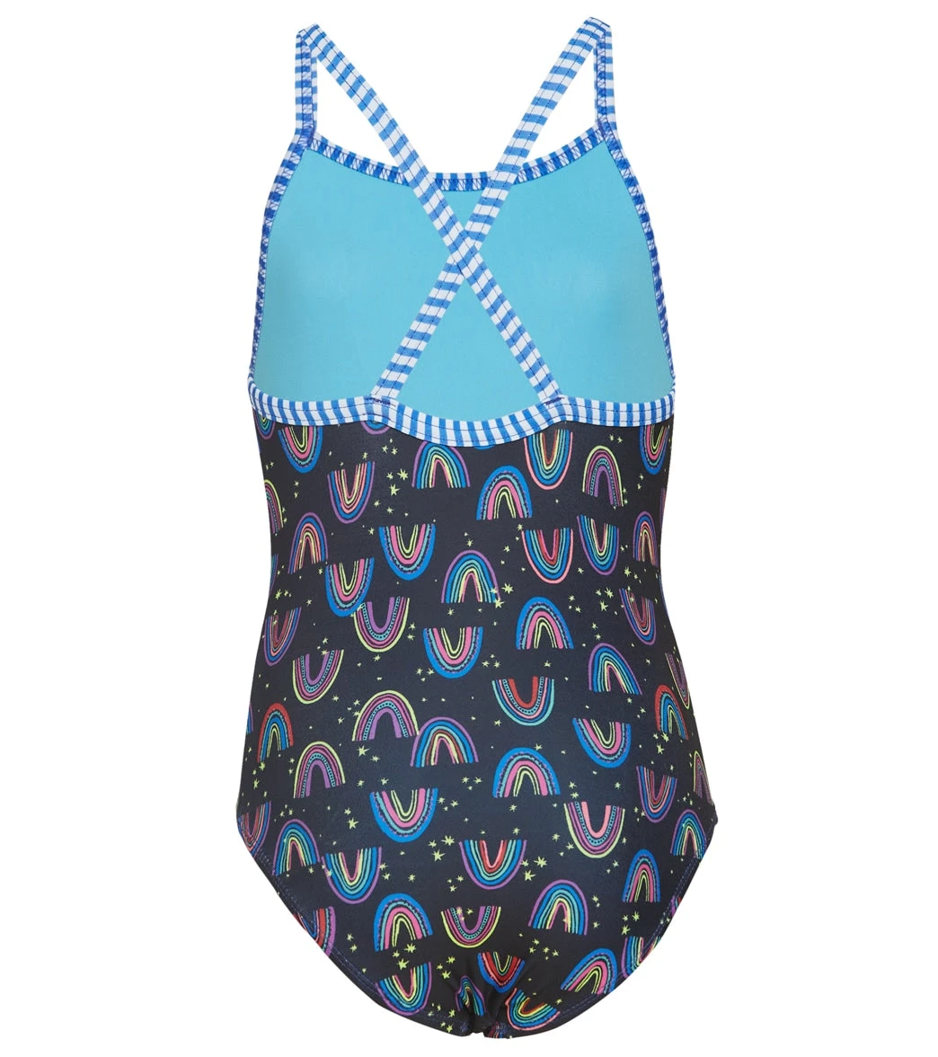 Splash into summer colors in the Dolfin Girls’ Be Happy One Piece Swimsuit (Big Kid), featuring classic Dolfin Uglies striped binding, and chlorine-resistant fabric that’ll last you all season.
