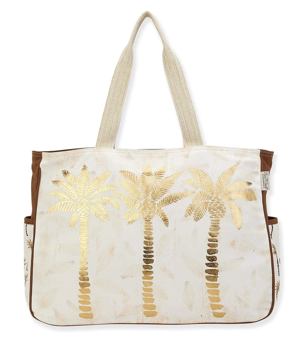 Sun N Sand Gold Metallic Palm Tree Oversized Tote